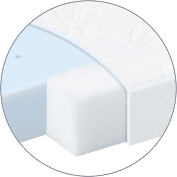 - Zijdelingse trapvormige veiligheidsranden voorkomen dat men wegzakt – geen klemming tussen bed en matras mogelijk
