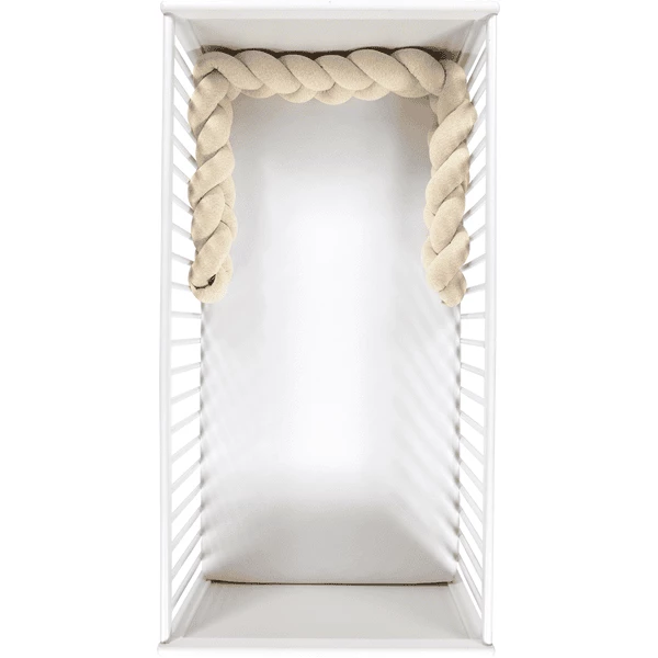 De betoverend gevlochten nestslang van Alvi ® voor het babybedje biedt puffende bescherming voor kleine babyhoofdjes. Als bedomranding dient de nestslang als betrouwbare bescherming tegen onaangename stoten op harde spijlen of tegen onaangename tocht. Het kan ook worden gebruikt om het liggedeelte in de kinderwagen af te bakenen of als valbescherming op de luiertafel.