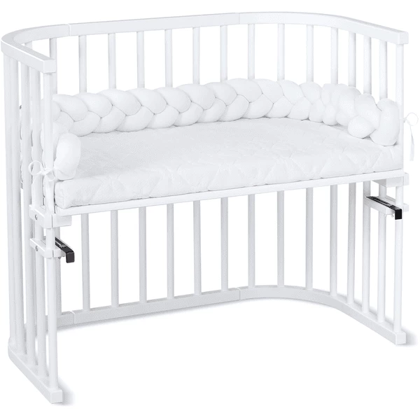 Met zijn aangenaam zachte jersey oppervlak van gekamd katoen, beschermt het uw lieveling tegen het houten frame van het kinderbedje. De nestslang is royaal gevuld met hypoallergene siliconenwol, dus niet te zacht maar ook niet te hard, en blijft stabiel in zijn vorm.
