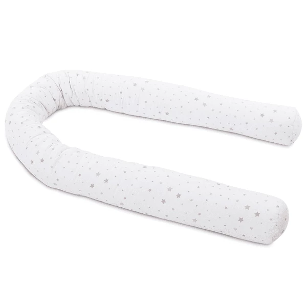 Veel kinderen slapen het best op hun zij. Dat is waar de nestslang in beeld komt – als een steunkussen. Het is royaal gevuld met hypoallergene siliconenwol, zodat het niet te zacht maar ook niet te hard is en daardoor als optimale steun kan dienen. Met zijn aangenaam zachte, 100% katoenen oppervlak, beschermt het uw lieveling tegen het houten frame van het ledikant. Zowel de hoogwaardige vulling als het oppervlak voldoen aan de hoogste kwaliteit en garanderen zowel de veiligheid als het comfort van uw kind. Bovendien is de nestslang veelzijdig – of het nu in het wiegje, in de box of als speelkameraadje is, de nestslang past zich dankzij zijn flexibiliteit aan alle omstandigheden aan. Bovendien kan hij worden gebruikt als een all-round bescherming op de luiertafel. Als hij niet meer nodig is in het bed, dient hij als speelkameraadje of als tochtstopper.