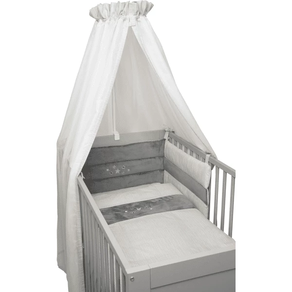 - Bestaat uit een beddengoed, een nest en een tule luifel