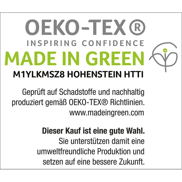 - MADE IN GREEN door OEKO TEX® gecertificeerd: M1YLKMRV3 HOHENSTEIN HTTI
