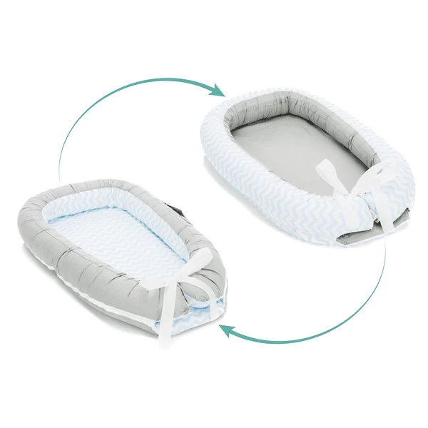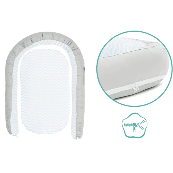 De Fillikid Knuffelnest heeft een heel bijzondere eigenschap, zodat u het kunt blijven gebruiken als uw kind wat groter is: de knusse zijbescherming kan met een ritssluiting worden verwijderd en als nestslang in het kinderbed worden gebruikt. Dit geeft u een 2in1 functie en bespaart u het geld voor een extra nestelslang.