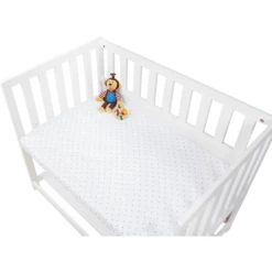 Bescherm de matras van het kinderbedje met dit rekbare hoeslaken en zorg tegelijkertijd voor een zacht slaapoppervlak.