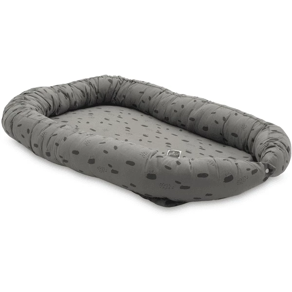Mooi knuffelnest van jollein met spot print . Het matras van het babynest heeft een afmeting van 40 x 70 cm, de buitenste rand is 35 cm.
