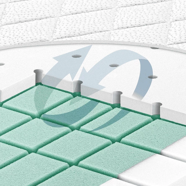 - Premium 2-laags principe: koudschuim en polyurethaan merkschuim met ventilatiekanalen.