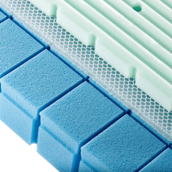 - Basis van hoogwaardig koudschuim met 120 puntelastische schuimblokjes, die individueel meegeven onder belasting, dient als dragend element