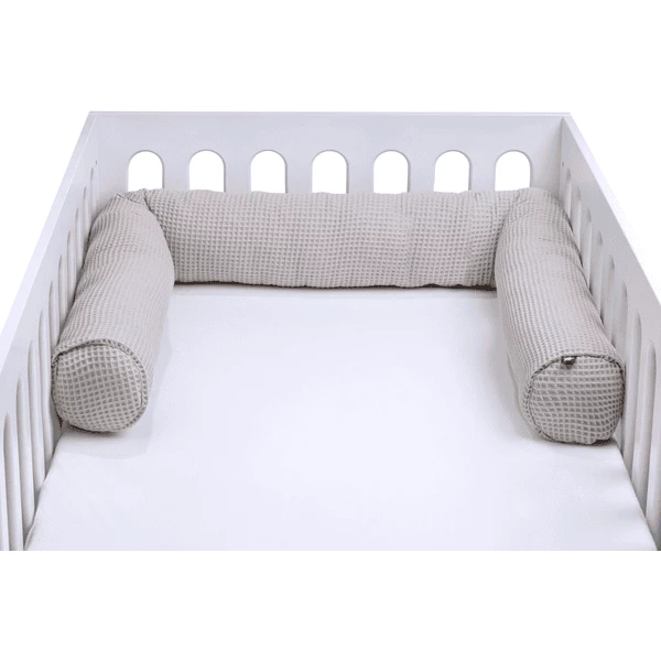 De nestslang van Julius Zöllner is 180 cm lang en heeft een diameter van 14 cm. Het beschermt het hoofdje van de baby tegen de harde spijlen van het ledikant en tegen tocht. Het is ook een leuk accessoire om mee te spelen en te knuffelen.