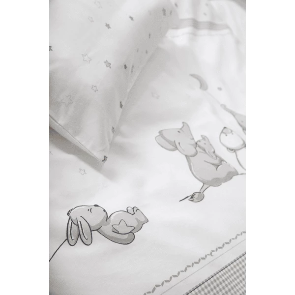 Het omkeerbare beddengoed van roba is een absoluut hoogtepunt in de babykamer. Het hoogwaardige 2-delige babybedlinnen bestaat uit een kussenhoes 40 cm x 35 cm en een dekbedovertrek 100 cm x 80 cm en is gemaakt van huidvriendelijk en ademend katoen.