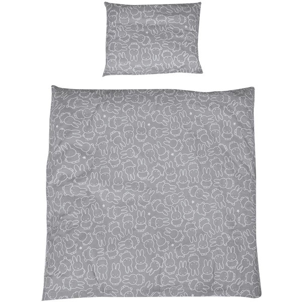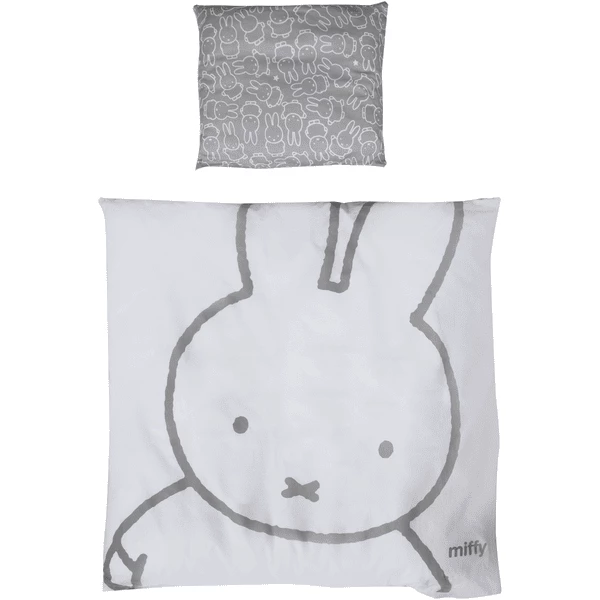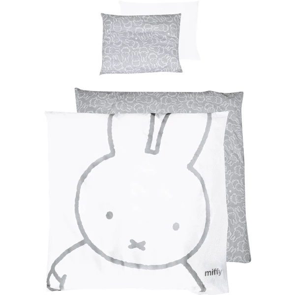 beddengoed is aan één zijde bedrukt met een lief, grijswit nijntje® -patroon.