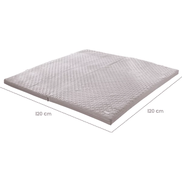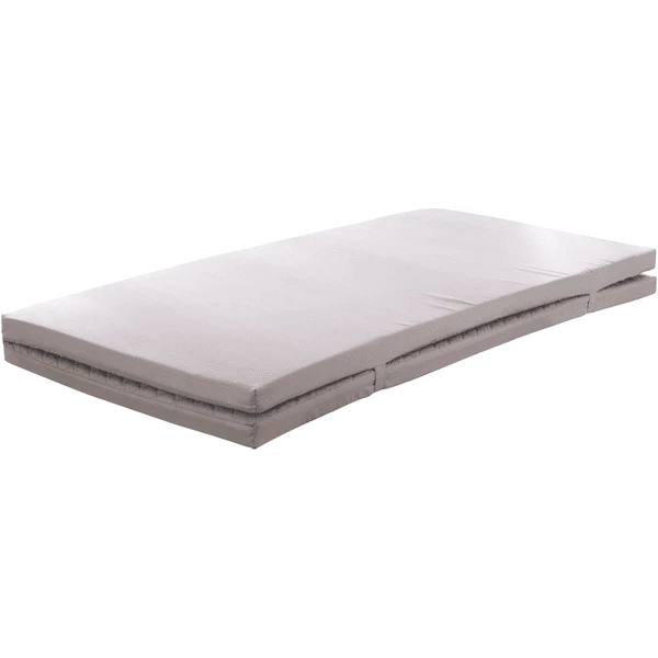 Het praktische roba speel- & kruipmatras is opvouwbaar en kan van een 120 x 120 cm speelmatras worden opgevouwen tot een 120 x 60 cm matras voor ledikanten en reisbedjes. Dankzij de zachte voering zijn kinderen goed beschermd tegen vallen en kou van de vloer tijdens het ravotten, spelen en kruipen. Deze speelmat is daarom een goed alternatief voor conventionele vaste kruipmatten. Opgevouwen kan de schuimmatras gebruikt worden in alle babybedden van 120 x 60 cm of voor kleine logees. Bij gebruik als slaapmat 60×120 cm is de matrashoogte 8 cm, bij gebruik als speelmatras uitgeklapt is de hoogte 4 cm. De speelmatras is afgedekt met een onderhoudsvriendelijke en gewatteerde microvezelhoes in de kleur antraciet. De hoes is gemaakt van 100% polyester en kan worden verwijderd met behulp van een veiligheidsrits en worden gewassen op 40°C. De matraskern is gemaakt van gelooid polyester. De matraskern bestaat uit getest PU-schuim. Alle gebruikte textiel is gecertificeerd en wordt tijdens de productie regelmatig getest op schadelijke stoffen.