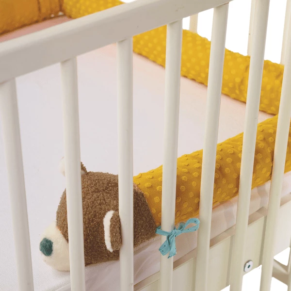 De zachte bedrol van reliëftrui, pluche en nicki uit de serie dragen “Ben”. Voor het knuffelen in bed of in de kar, als extra randbescherming als nest en in de box. Kan worden vastgebonden en beschermt tegen tocht.