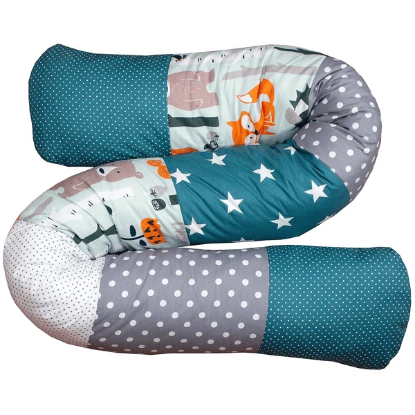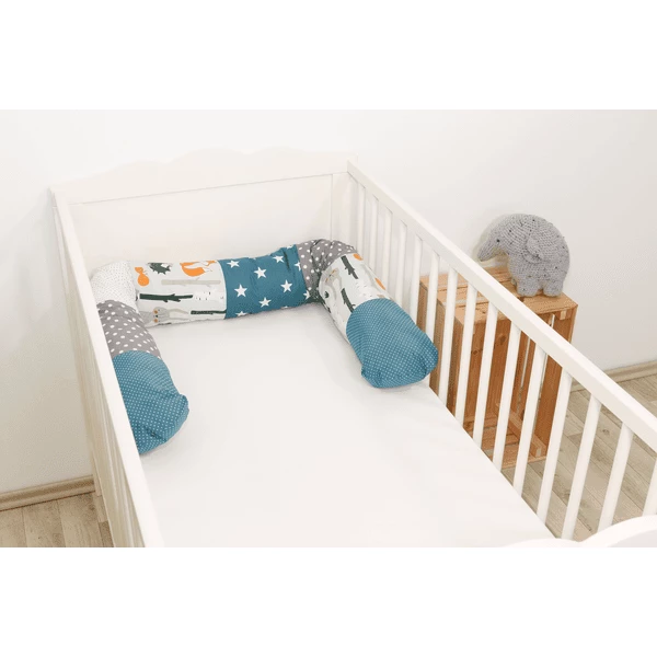 De mooie bedslang met verschillende motieven is 160 centimeter lang en 13 centimeter dik. De zachte buitenstof is van 100% bio katoen en heeft een vulling van ÖkoTex polyester. De baby bedslang is wasbaar bij 30°C in de wasmachine.