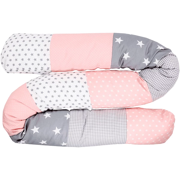 Het mooie slangetje Nest met verschillende motieven is 200 centimeter lang en 13 centimeter dik. De zachte buitenstof is gemaakt van 100% Oeko-Tex-gecertificeerd katoen en heeft een geruisloze Oeko-Tex polyester vulling. De babybedjesrol is machinewasbaar op 30°C.