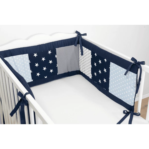 Een unikleurige achterkant is met een voorkant van 20×23 cm grote patches met verschillende motieven gecombineerd. Het nestje heeft nog een vijf centimeter brede rand aan de voorkant in de kleur van de achterkant.